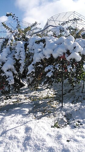 ブドウの剪定をしていたら、枝にカマキリの卵がありました。ご存知かと思いますが、カマキリは、雪が降り積もっても埋まらない高さに卵を産むと言われています。今回あった所は180cm〜190cm位。結構降りそうだな…。