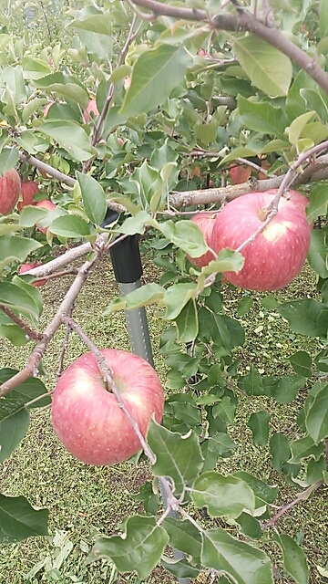 今の時期に収穫最盛期の「千秋」です。この品種は着色が進み収穫間際になると軸の所が割れてくる品種で、なかなか栽培が難しいです。軸割れになると商品価値が下がるため、出荷出来ません。でも食べてはジューシーでとても美味しいですので、食べて頂きたいなぁ(`・ω・´)