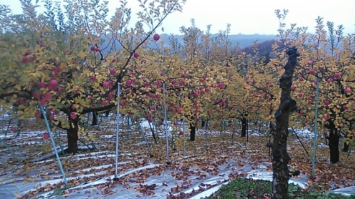 剪定講習会 コメントをどうぞ 先日、デラウェアの剪定講習会を行いました。雪が降らない地域では、剪定は冬場の仕事だと思いますが、置賜では、落葉期から根雪になるまでの間に、剪定をして、少しでもブドウ棚に雪が積もらないようにします。果樹栽培で、剪定は最も重要な作業の一つだと思います。私はまだまだ修業中の身なので、しっかり身につけられるようにしたいと思います。