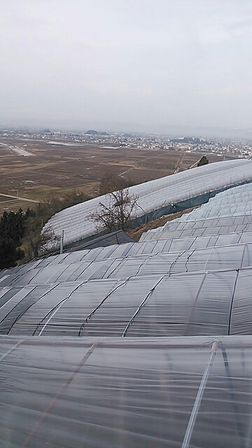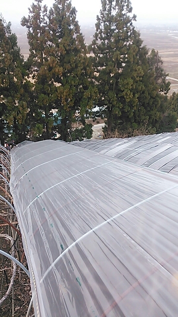 ビニール張り コメントをどうぞ 朝デラウェアの雨よけビニールハウスの張り方を手伝ってきました。なんと朝5時からの作業で、家を出たときは車のライトを点けました(>。 写真を見れば分かる様に、この園地は南陽市でも急勾配で、慣れてない人には歩くだけでも息が切れる、という条件なのですが日当たりが良く、甘いデラウェアが収穫出来るんです!