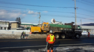 写真は国道での排雪作業の様子を撮ったものです。私たちには見馴れた光景ですが、除雪車に雪捨て場に運ぶダンプ(順番に何台も来る)に安全確保の誘導員(複数人)にと、知らない人が見ればなかり大掛かりな作業ですよね。でもこうやって何回か雪を片付けておかないと、いざというとき除雪する場所が確保できなくなったり、道幅が狭くなって車が行き交えなくなったりしてしまいます。一見するとただ雪を除けるだけで生産性のある作業とは言えませんが、私たちにとってはとても重要で有り難い作業なんですよねー。