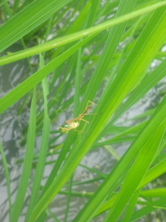 新装ブログの最初の投稿(のはず)はカマキリです。田んぼでカマキリが目立ってくるのは大きくなる夏以降なんですが、今年はこんな小さな段階でお目にかかれてちょっとラッキーな感じです(^^)まあ小さくてもバリバリ獲物を捕まえてるみたいなので、あっという間に大きくなっていくと思いますけどね。(めぐ)