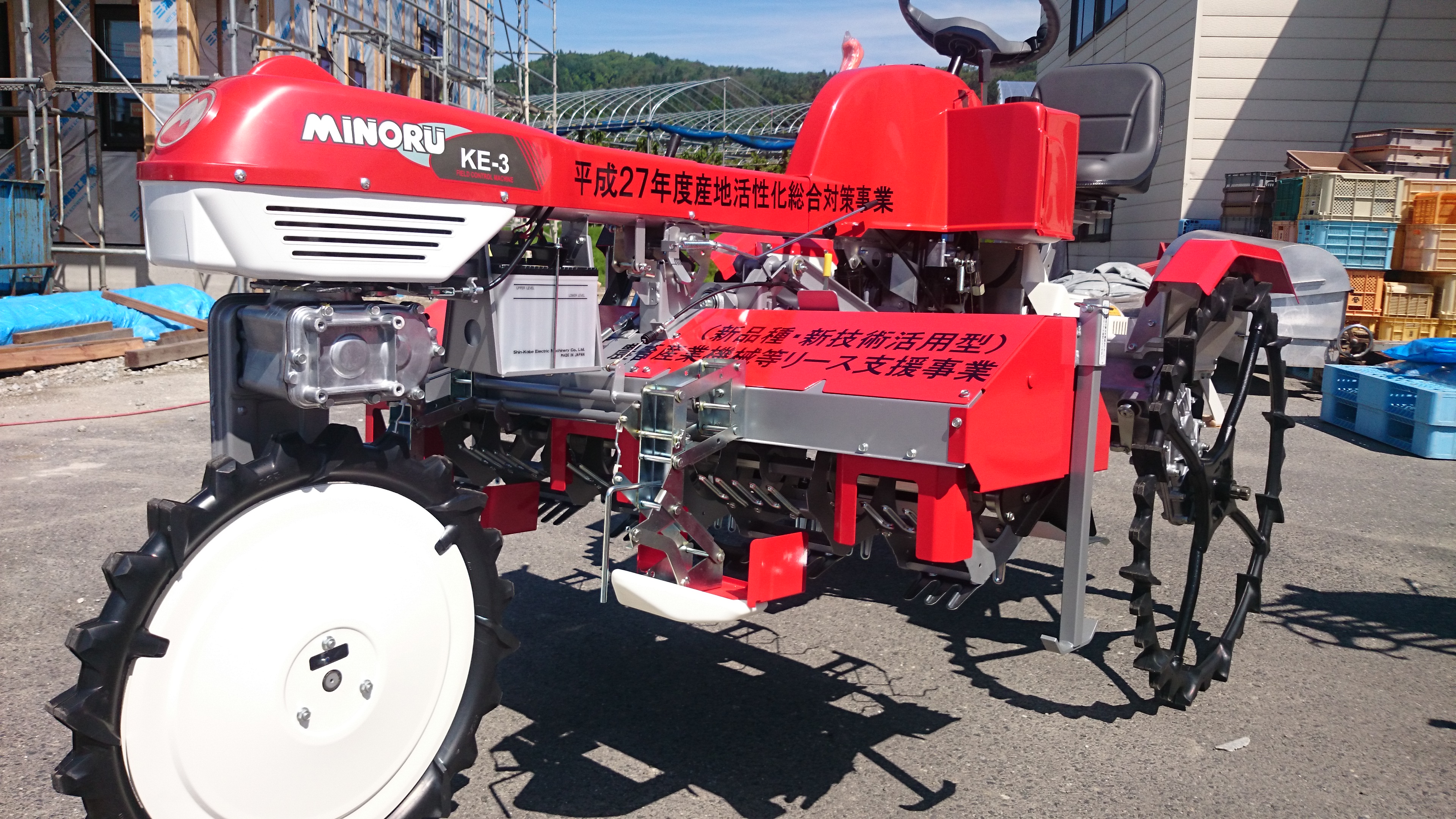 今日おきたま産直センターに新型の乗用除草機が来ました!車体に付いている登録番号は「0005」。もしかしたら国内で5台目?というくらいの最新型なんですよ!産直センターが乗用タイプの除草機を導入するのは今回が初めてですが、期待はかなり大きなものがあります。今年は希望する組合員で日程調整しながら使っていく予定ですが、ひとりでも多くの農家がいい手応えを掴めたらいいなと思います。