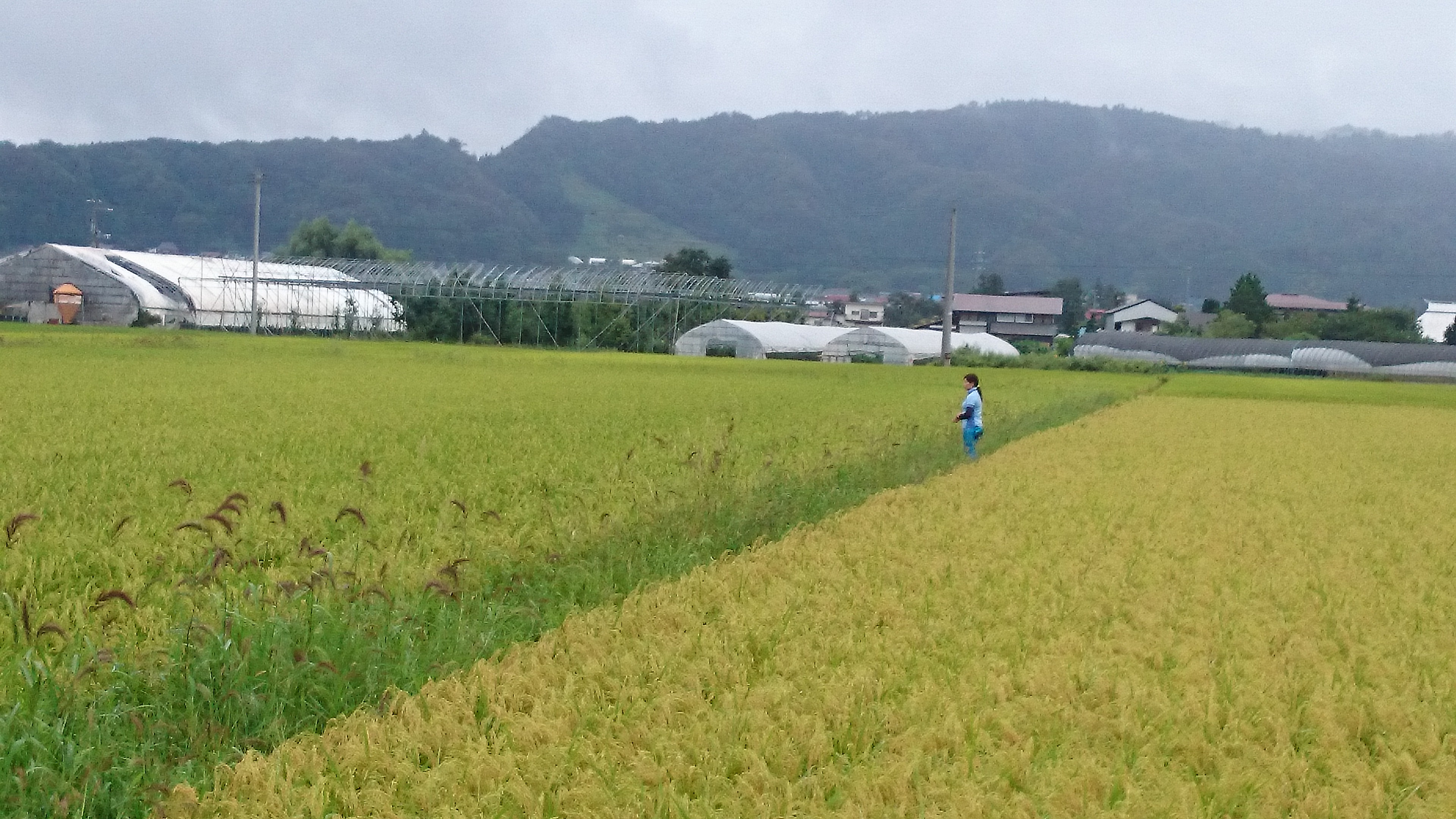 今日は置賜総合支庁農業技術普及課の担当者が来て現地確認をしてくれました。「コシヒカリ」も「ひとめぼれ」も病気も倒伏もない状況だったのでそんなに大きな問題はないだろうな、と思っていましたが、検査も滞りなく済んだのでよかったです。最後までしっかり管理して、品質のよい種子を供給したいところですね。栽培管理するほうは