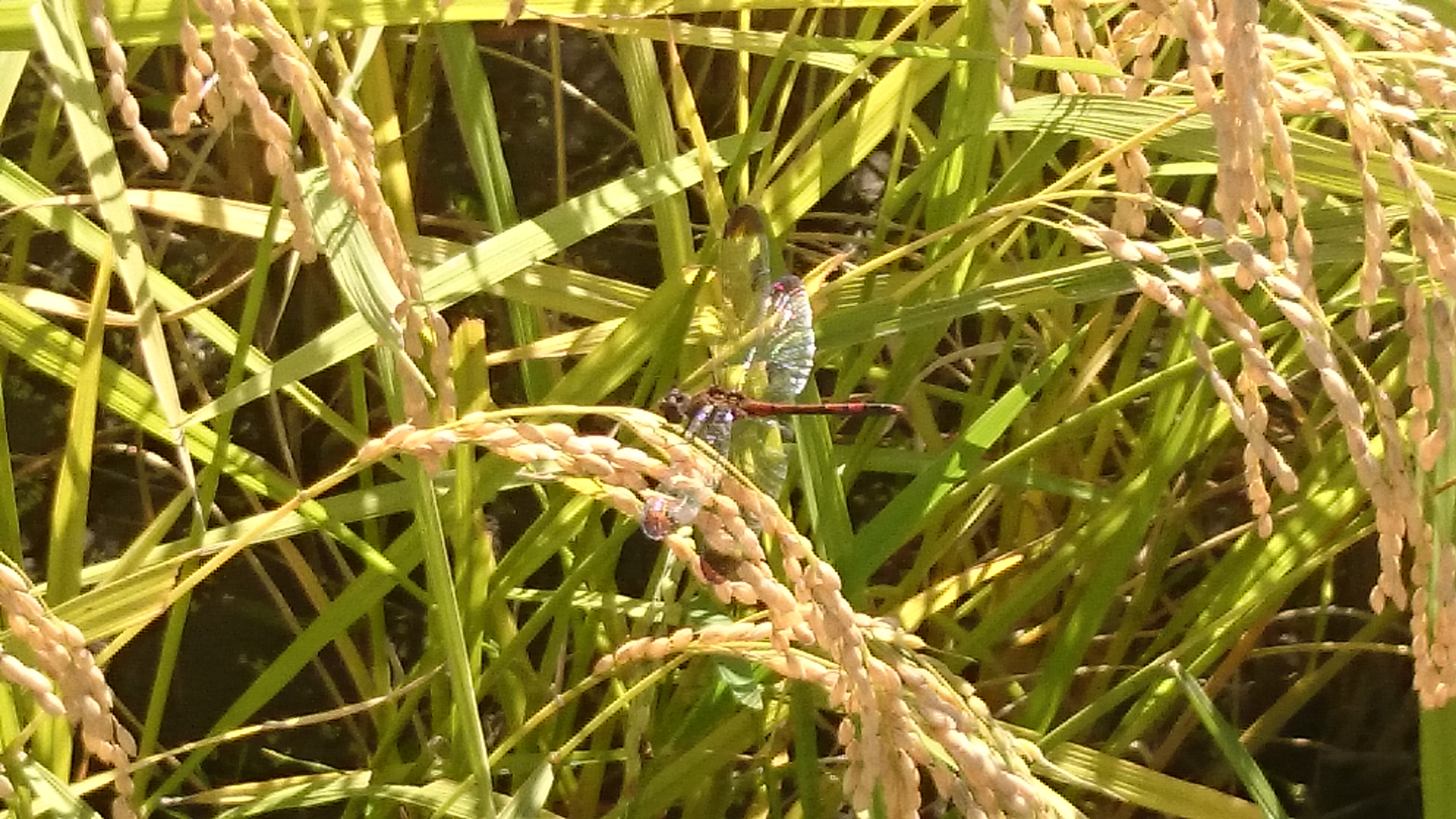 赤とんぼ コメントをどうぞ 稲穂で佇む赤とんぼ(アキアカネ)です。 夏場は山に避暑に出掛ける赤とんぼですが、今年は8月終わり頃からだんだん田んぼに戻ってきました。でもその頃はずっと雨続きで、せっかく戻ってきたのにちょっと可哀想な状況でした。死んでしまったものも少なくなかったように思います。 そんなこんなでちょっと数が少ないような気もしますが、やっぱり秋の田んぼには赤とんぼが似合いますよね。そろそろ稲刈りが始まりますが、元気に飛び回ってほしいものです。
