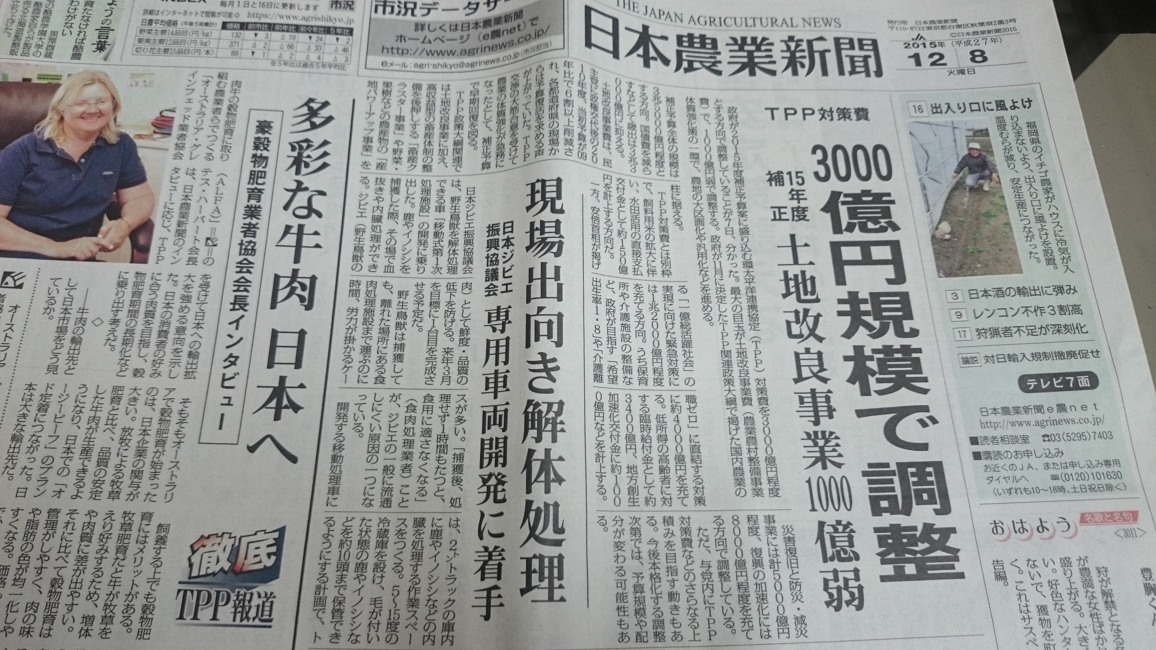 TPP対策費 コメントをどうぞ 今日の農業新聞の1面記事です。補正予算に盛り込むTPP対策費が3000億円規模で、最大の目玉が土地改良事業で1000億円弱が充てられるというようなことが書いてあります。 で、ここからは私の感想。 ・わざわざ大金を投入して大規模化したってそんなにコスト下がらねーよ(-_-) ・農家じゃなくて土木業者が潤うだけじゃん・・・ 私の感想、なにか間違ってますかね?
