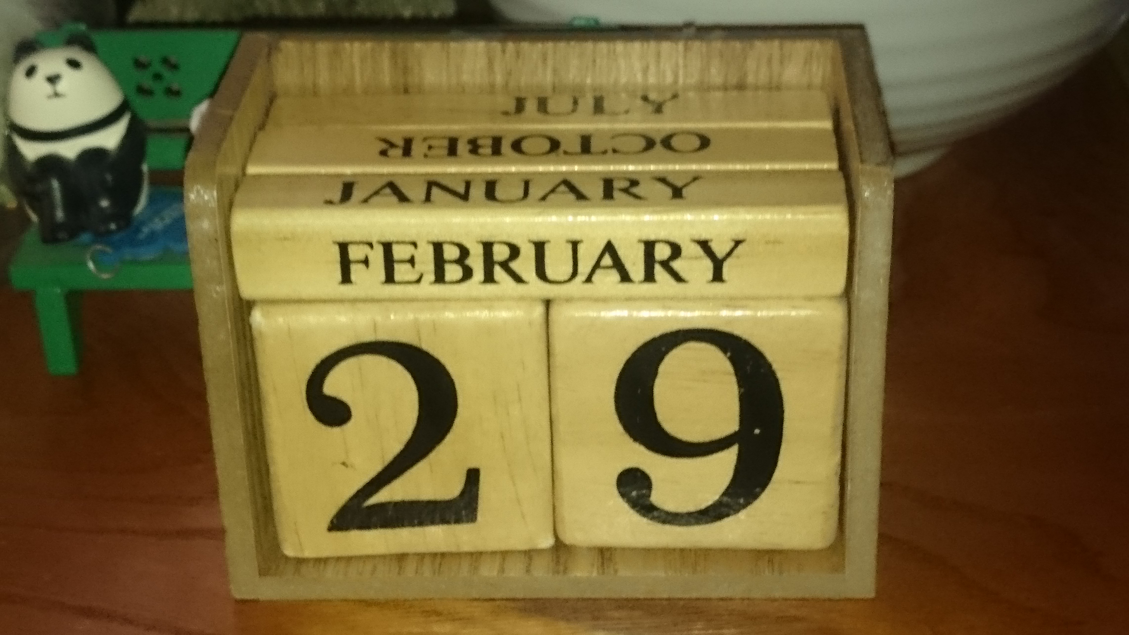 今日は4年に1度の2月29日。うちの玄関には木を組み替えて日付を表すタイプのカレンダーがあるのですが、「あれ?2月29日って大丈夫なんだっけ?」と思いつつやってみました。でもなんの問題もなくスカッと出来ましたね。2月26日が出来て29日が出来ない訳ないもんなー(笑)