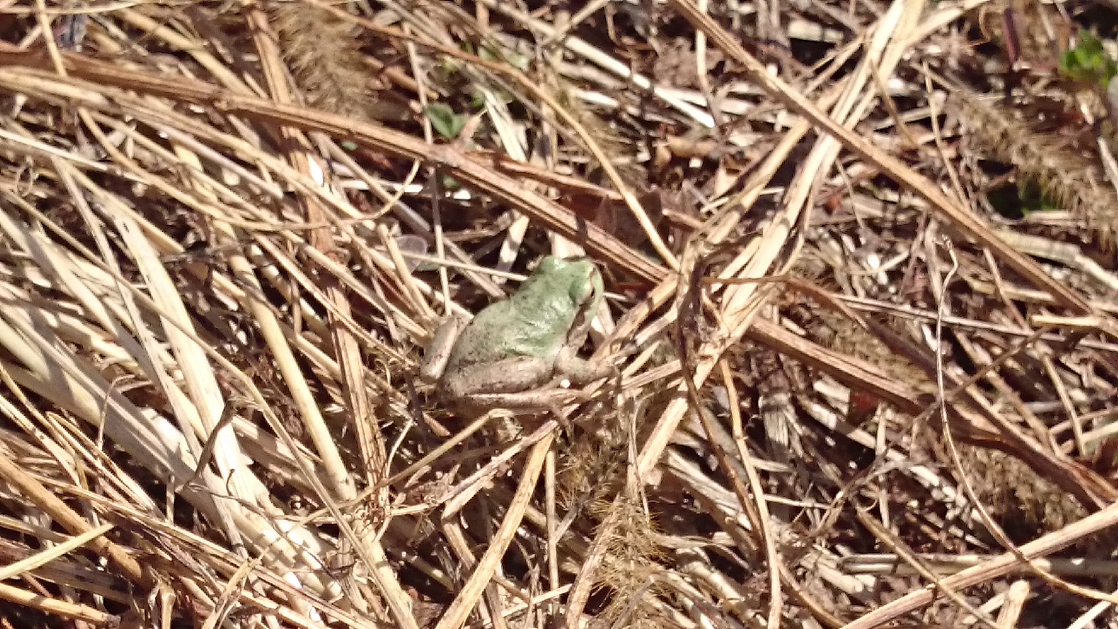 10日くらい前からチラホラ見かけていたのですが、15℃を超える暖かさとなった昨日くらいからふつうに見られるようになりました。皮膚に張りがないので、冬眠から目覚めてまだ間もないのかもしれませんね。