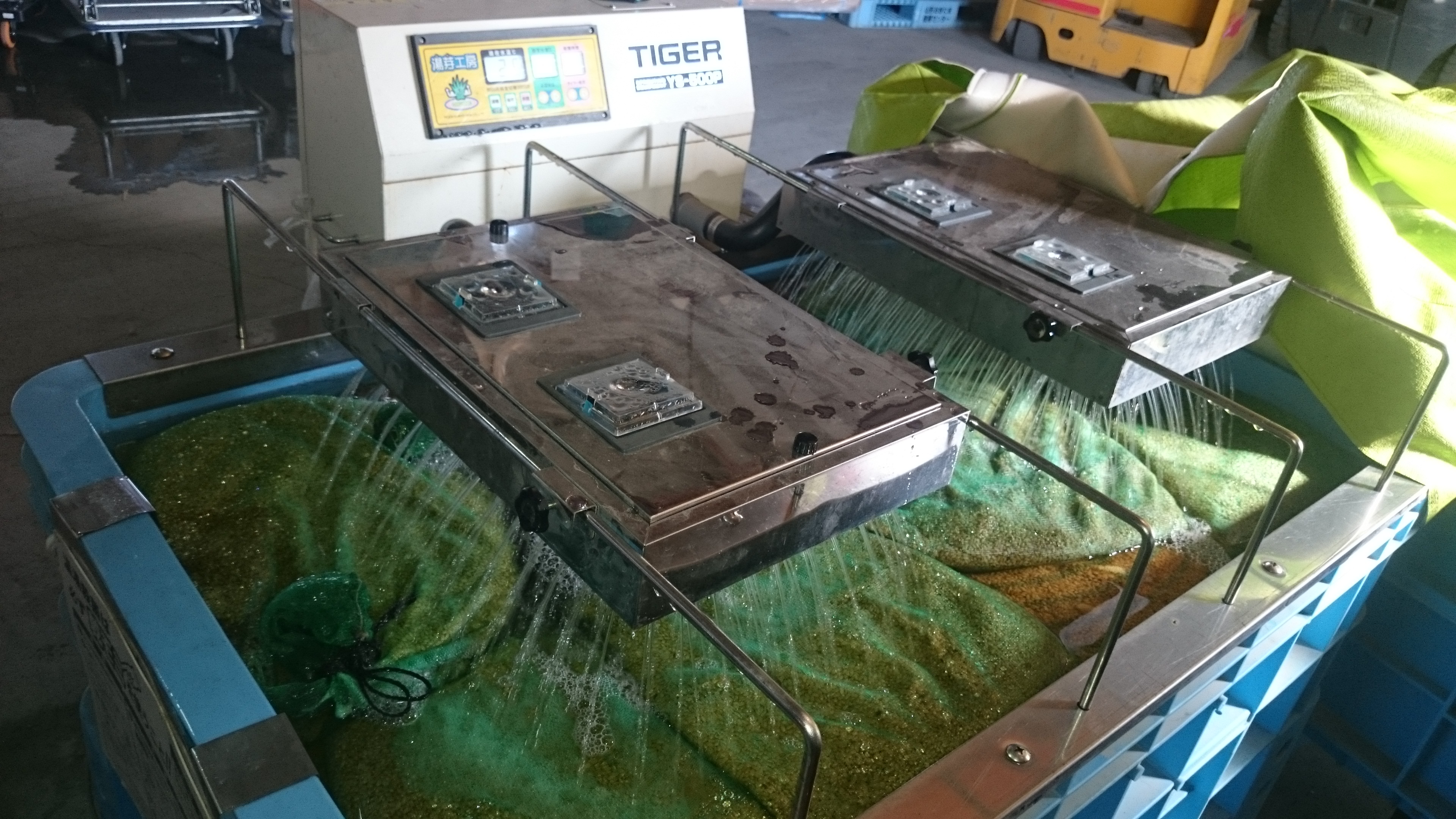 そしてその次は「浸種」です。 温湯処理の済んだ種もみにたっぷり水を吸わせ、種もみが発芽しやすい状態にします。浸種の目安は積算で100℃~120℃くらい(水温10℃なら10~12日間)になります。