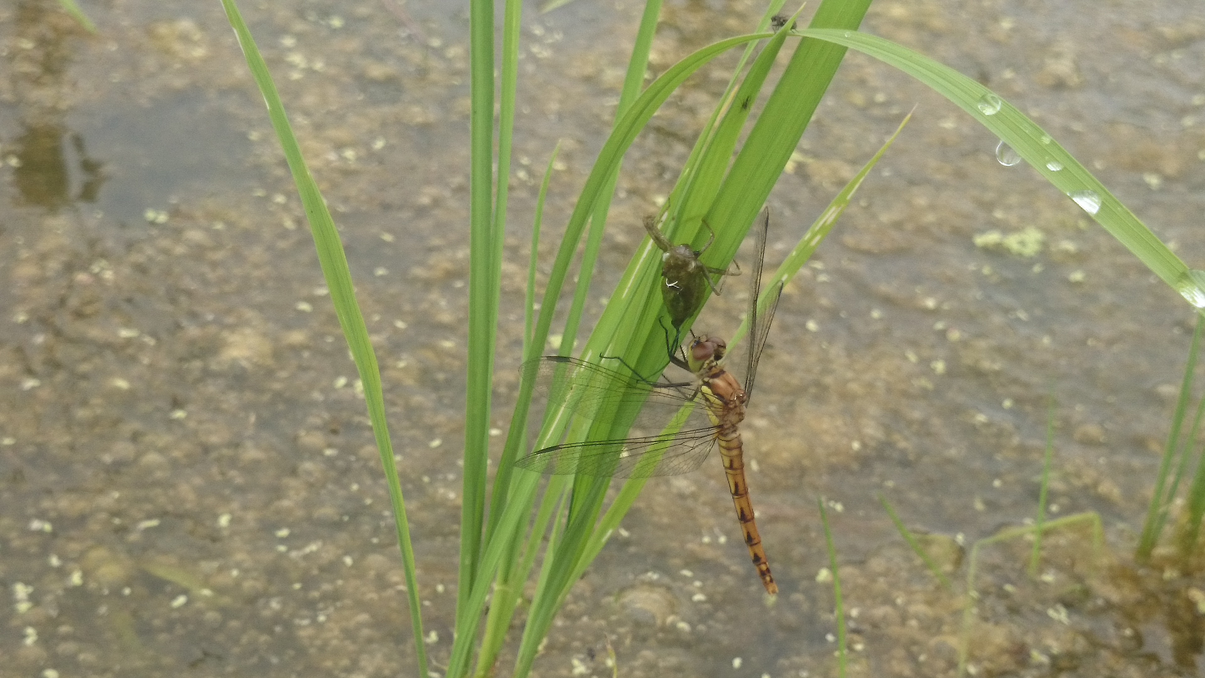 うちの田んぼでは今朝からアキアカネの羽化が始まったようです。午前中雨模様だったこともあって数は少なかったようですが、明日以降どんどん飛び立っていくのではないかと思います。せっかくなら天気のいい日に飛び立っていってほしいですからね。