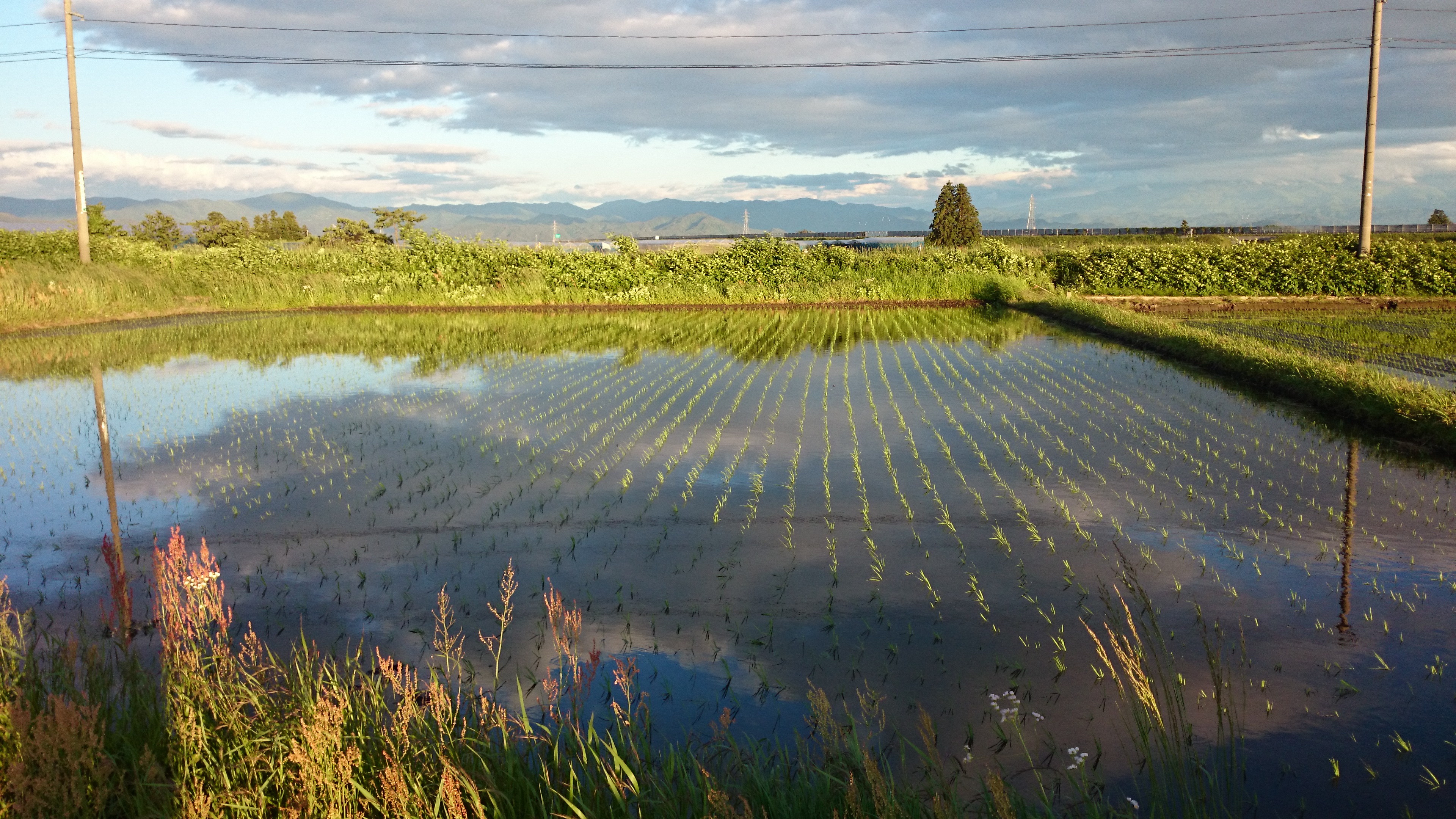今日の18時半頃撮った田んぼの写真です(有機栽培コシヒカリ)。稲の生育は順調な感じで、株元にちょっと見える雑草(コナギ)をこの程度で抑えられればいいところだなと思っています。この田んぼは土曜日に乗用除草機を入れる予定ですが、なんとか上手に処理したいところですね。