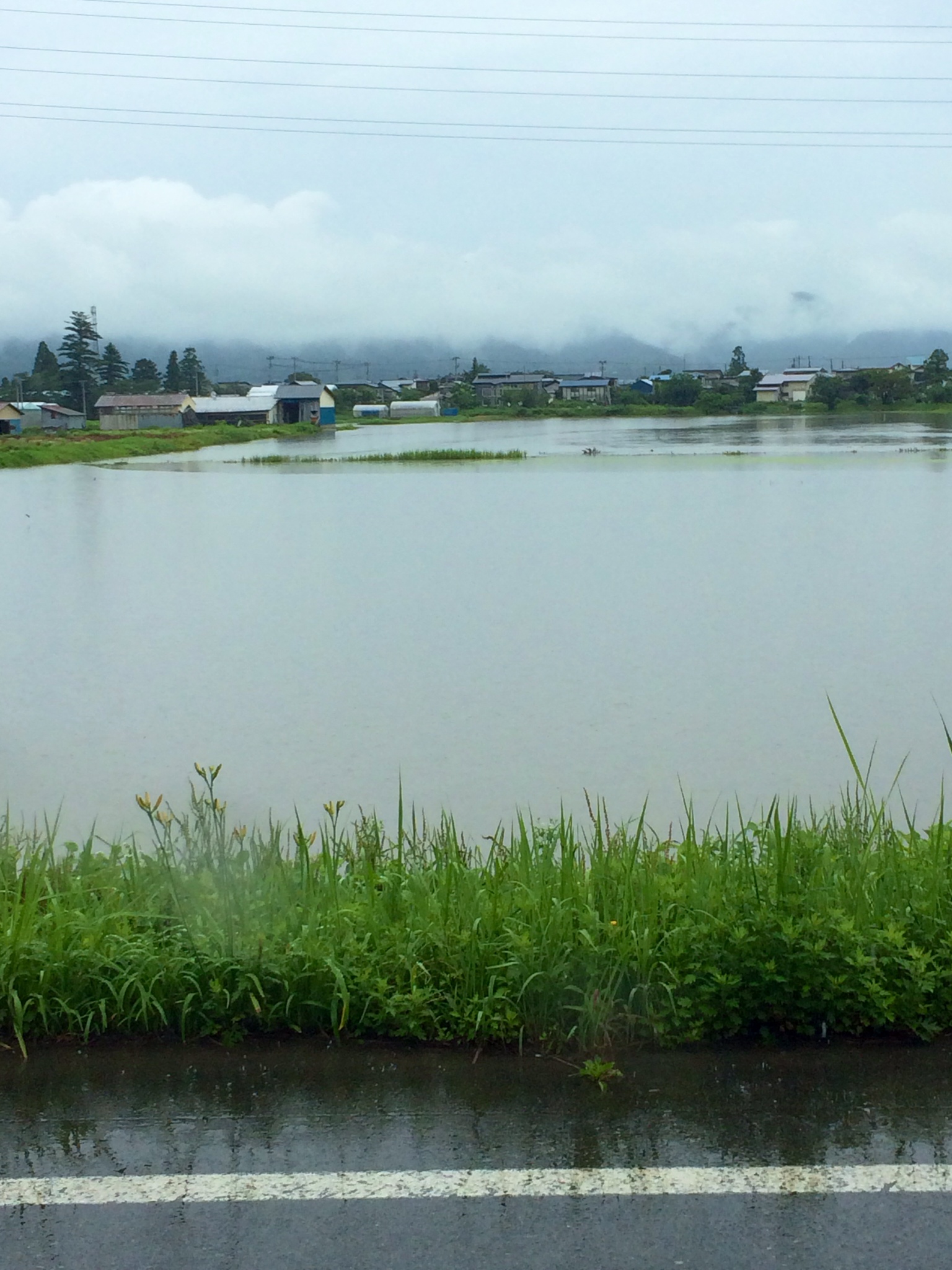 また増水中 コメントをどうぞ 各地で台風の被害がでていますが、こちらでも、台風が前線を刺激して、かなりの雨が降っています。南陽市内でも、避難勧告等が出されました。これから台風の雨が来たら、 とんでもないことになりそうです。 ちなみに、画像の水のところは全て田んぼです。