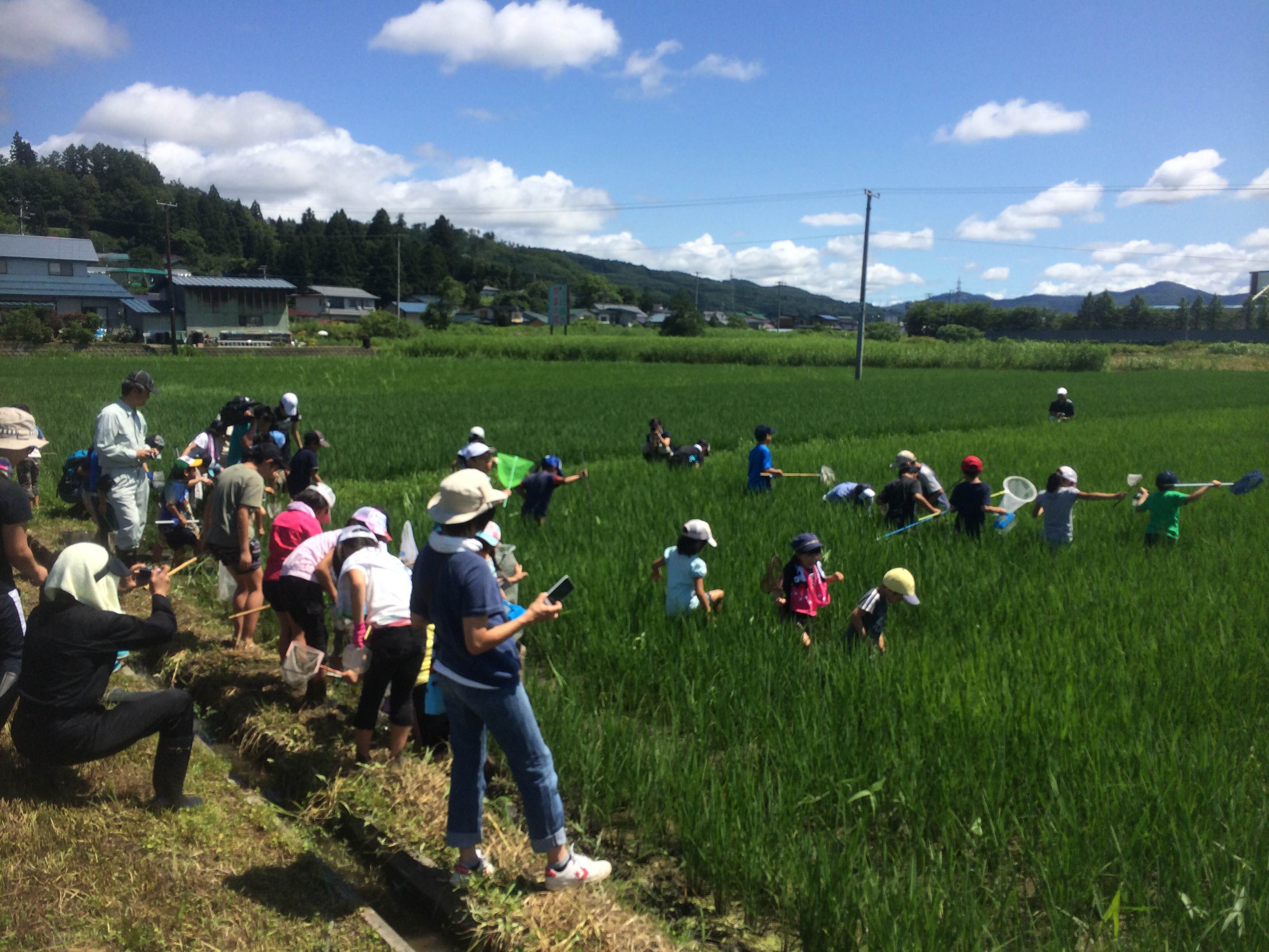 生き物調査 コメントをどうぞ 生き物調査隊新隊長の島崎です。今日も生き物調査に行ってきました。 先週は産直センター主催の生き物調査でしたが、隊長として忙しく写真を撮るのも忘れてました。 今回は梨郷地区での生き物調査。小学生と一般の参加者と農家の方々を合わせて80人と、非常に多くの参加者に恵まれました。 隊長の私の命令も聞かないくらい小学生は興奮状態でしたがよろこんでもらえてよかったです。 締めはみんなで手作りつや姫カレーを食べました。